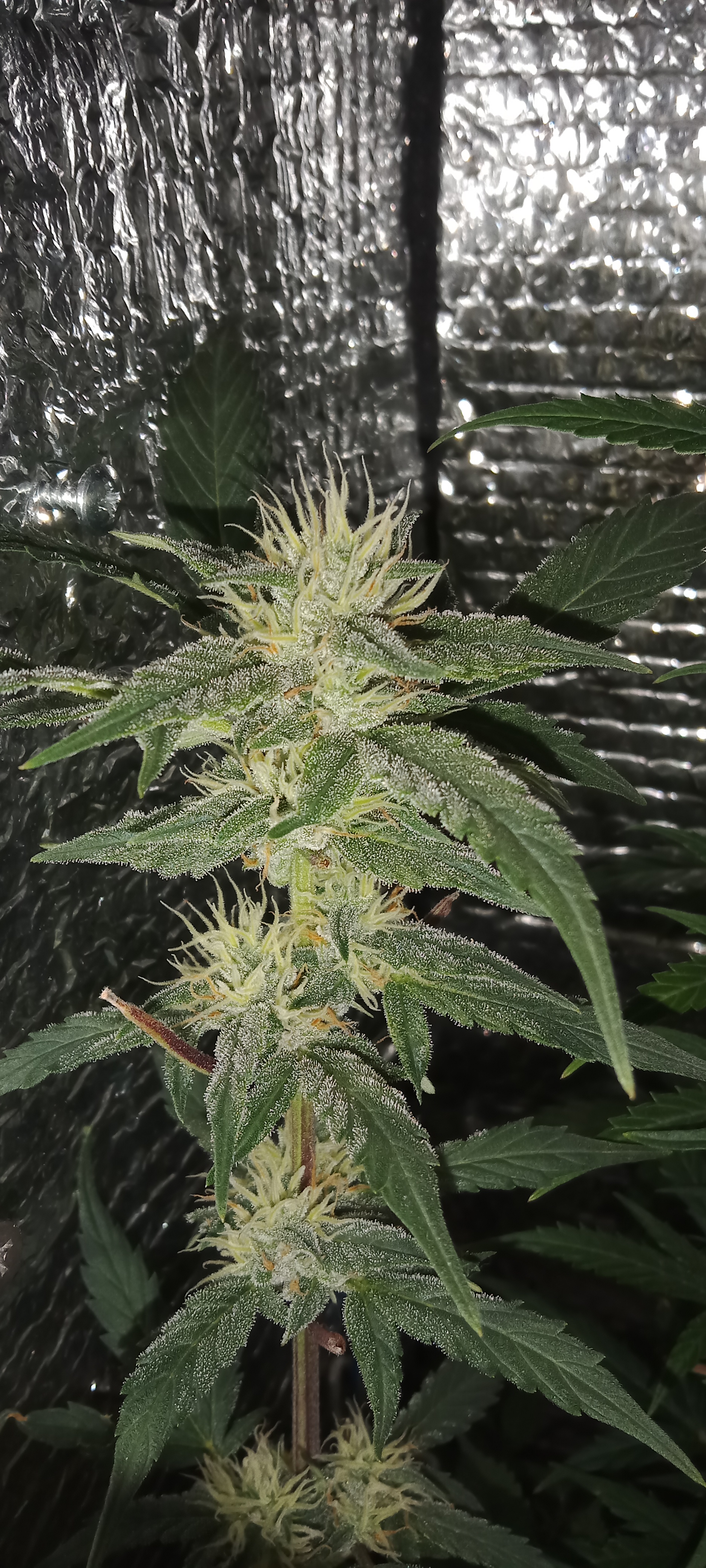 Очень хороший сорт,только надо осторожнее,вымахивает гигантских размеров под метра легко в индоре..гнуть-не перегнуть..но есть одно,,но,,созревают не равномерно,какието раньше ветки,какие то позже.верхушки не отрезал,стало жалко.Проращивал между влажными дисками по методу ,,санчеза,,